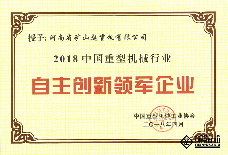 作為本次大會的重要內(nèi)容,大會隆重表彰了2018中國重型機(jī)械行業(yè)“自主創(chuàng)新領(lǐng)軍企業(yè)”及“自主創(chuàng)新先進(jìn)企業(yè)”。河南礦山榮獲“自主創(chuàng)新領(lǐng)軍企業(yè)”榮譽(yù)稱號。
